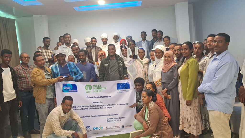 Ghion Peace Reconciliation and Development Association (GPRDA) has held a project closure workshop among key stakeholders to reflect on the achievements, challenges, and lessons learned from the WHH funded project on October 30, 2025. The workshop provided an important space for participants to develop a shared understanding of the project’s outcomes and to offer feedback that will help shape future interventions. The project, implemented from November 1, 2024, to October 31, 2025, delivered strong results across its core objectives despite operating in a fragile and rapidly changing context.